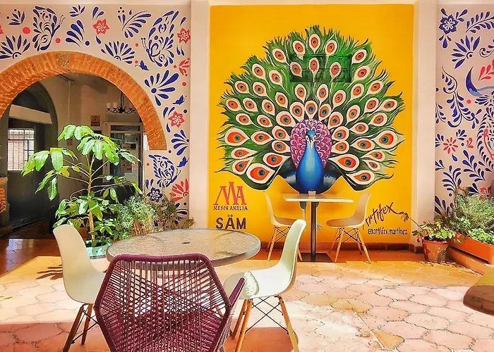 A Meson Amelia Hotel San Miguel de Allende vendégei számára napozórész és napozóterasz elérhető, az El Nigromante Ignacio Ramirez Kulturális Központ pedig nagyjából 20 perc sétára található. A csomagmegőrzőt kínáló hotel 7 szobája a kertre néz.